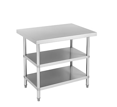 Sturdy and Durable Construction: The tables feature a robust frame and are designed to withstand heavy-duty use. The superior tensile strength of stainless steel allows them to support heavy kitchen equipment and withstand vigorous chopping, mixing, and other preparation tasks without wobbling.